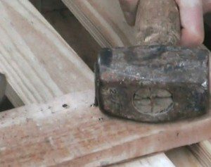Para remover los clavos, usamos un martillo y colocamos el listón de madera hacia abajo.
